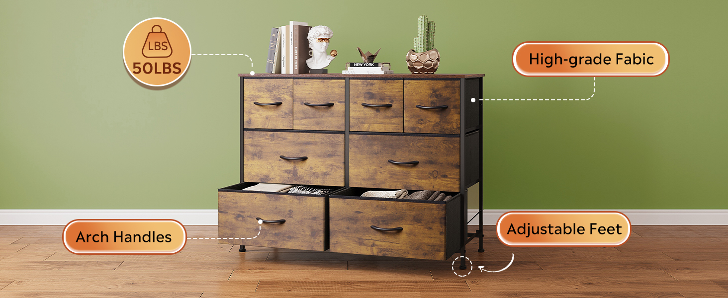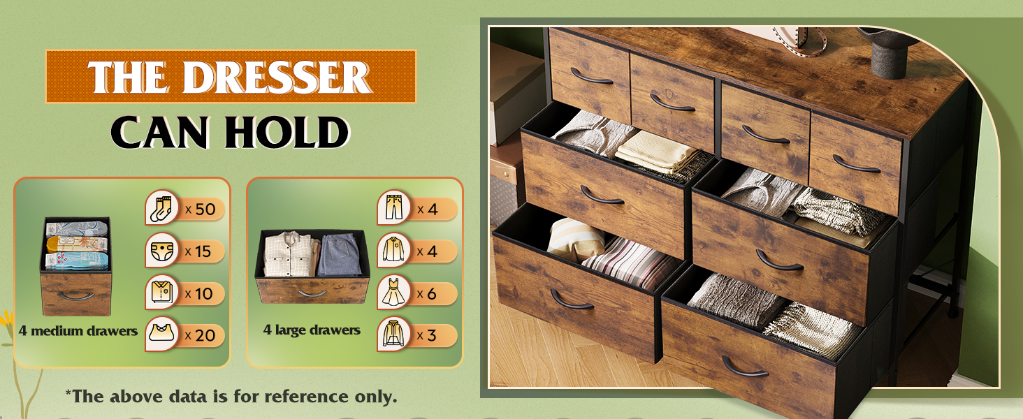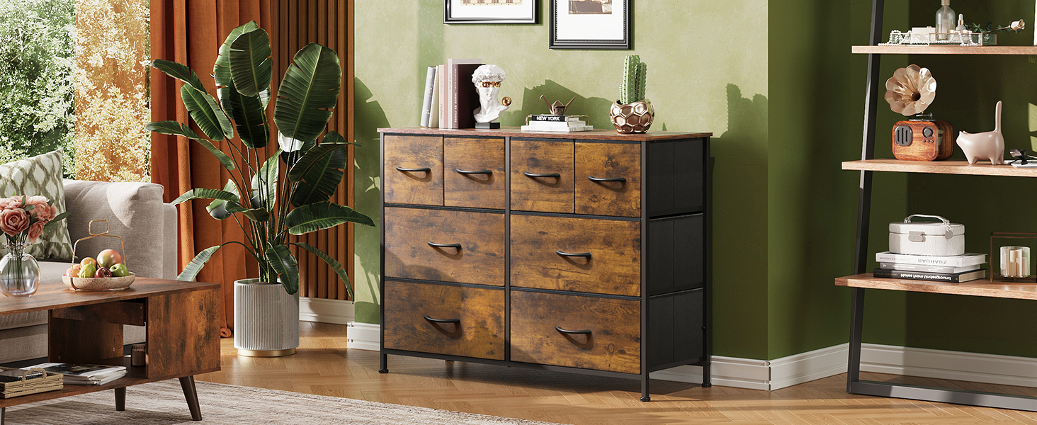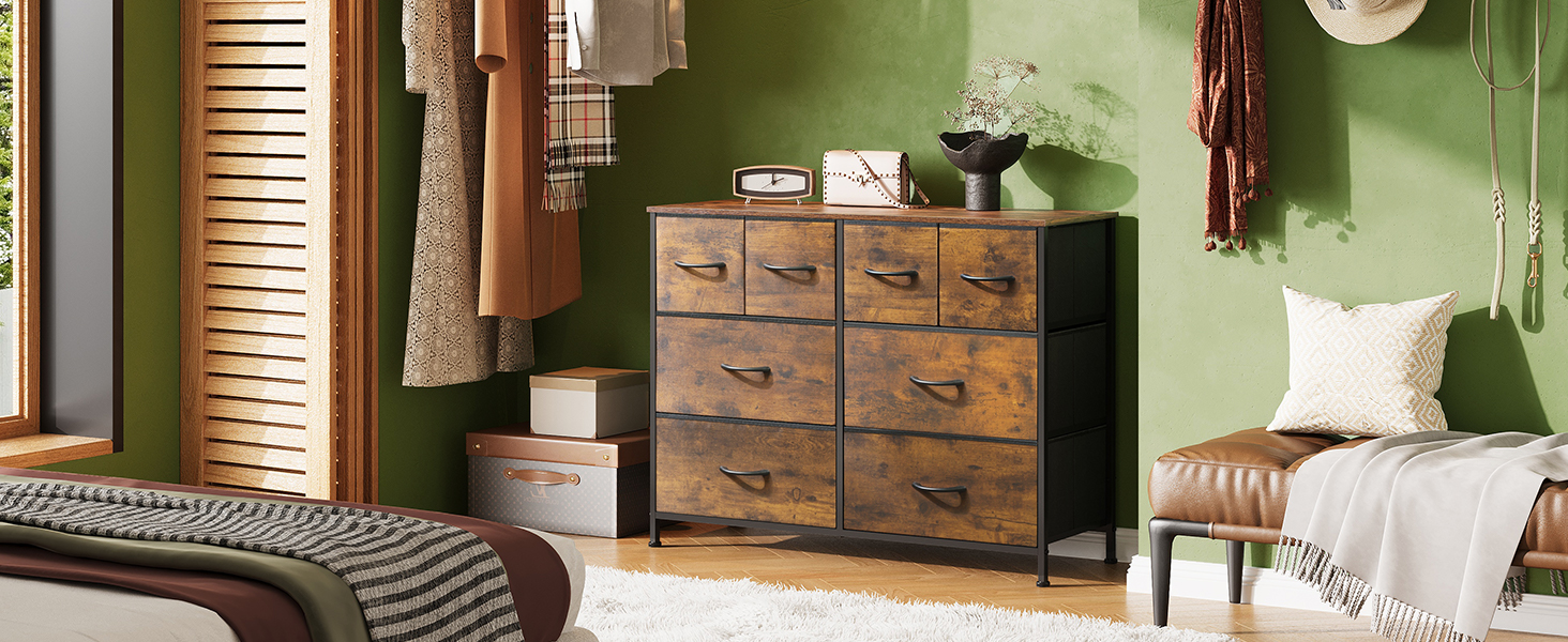 The 8 foldable deep drawers are spacious and provide endless organizational possibilities. Wooden top can place things you want to display or keep in reach, such as lamp, photos…