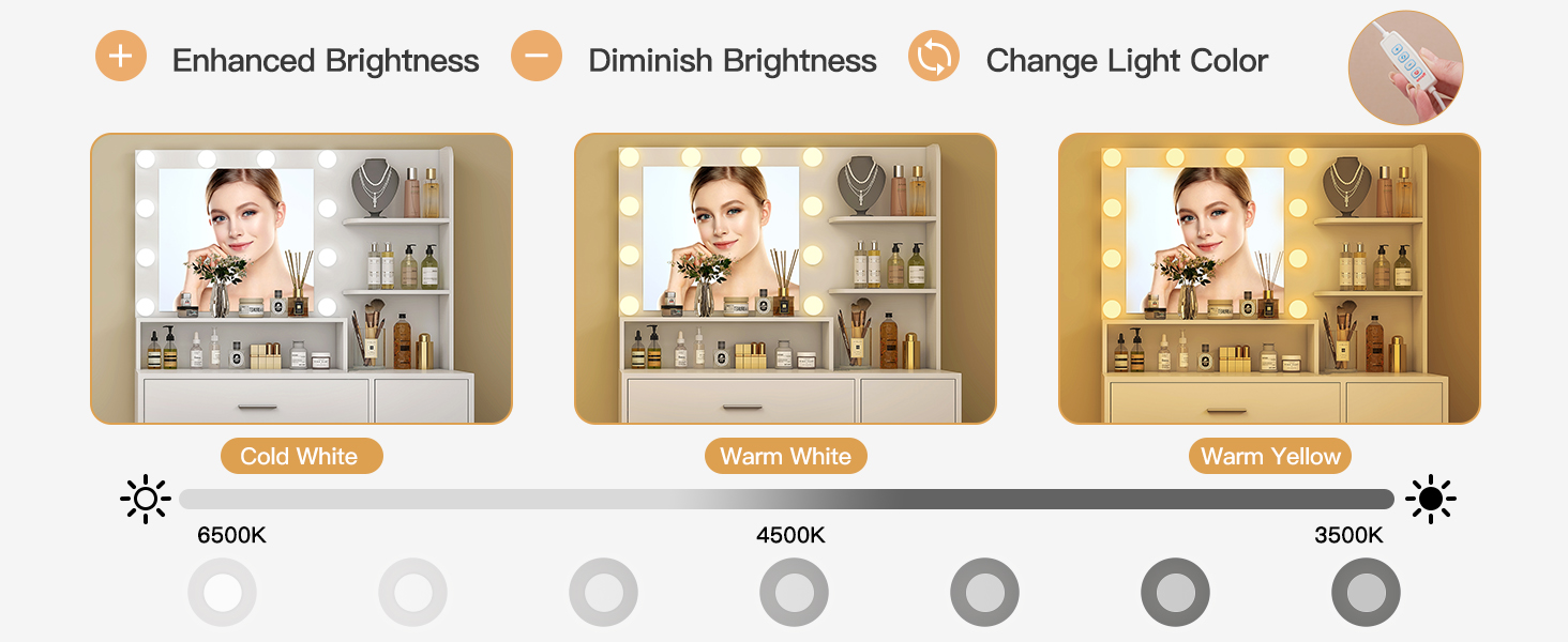 Hollywood lights recommended by professional makeup artists, with 3 modes, cold white, natural white and warm white options meet your different needs in different occasion. Brightness adjustable, evenly fill light from multiple angles, makeup has no dark corners and no shadows, and the details are clearer, which is every beautiful girl Must-have.