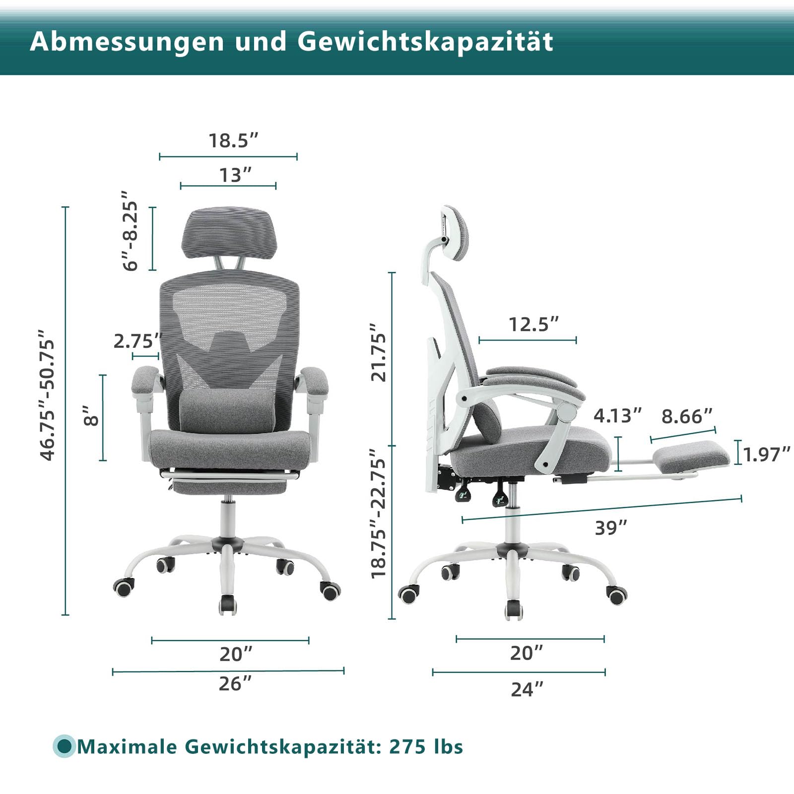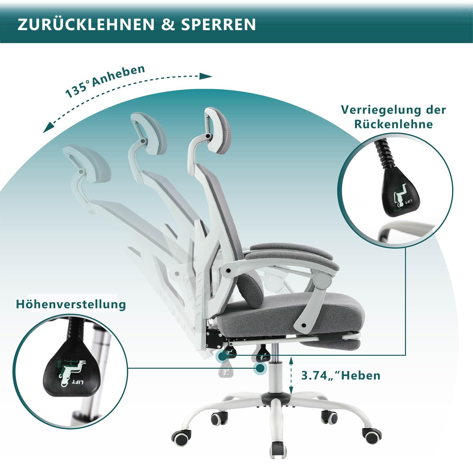 【Lockable Reclining Function】Push the lever up and down to lock or unlock the backrest, available for 90-135 degrees of tilt. Collaborate with a retractable footrest, the reclining office chair surely provides a super cosy lunchtime break spot, not only comfy enough for work, but also suitable for reading, game-playing and a short napping.