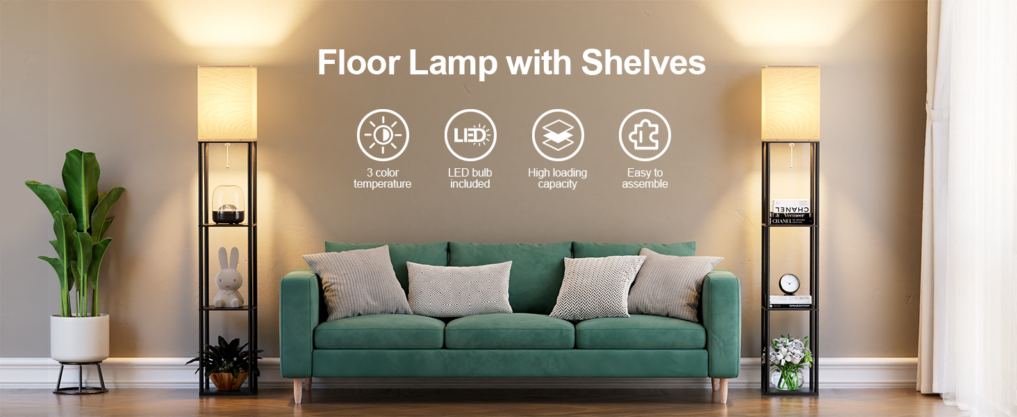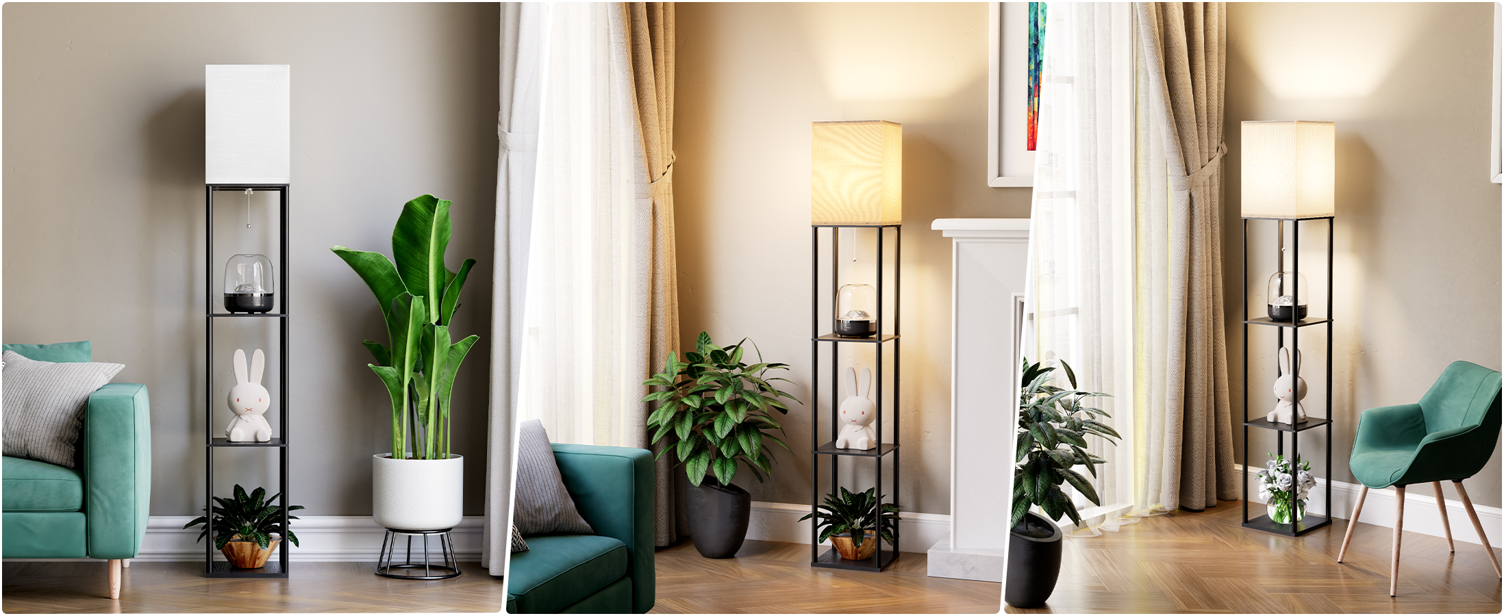 this shelf floor lamp is a perfect holiday gift and birthday gift for mothers, fathers, wives, husbands, children, and friends. It's suitable for beside a sofa, tv stand, fish tank in the living room, reading in the bedroom or reading room, office, library, kitchen, coffee shop, hotel, restaurant, etc.